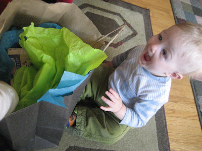 oh! i love the wide mouthed smile with his present!