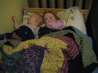 The littlest don’t actually sleep in the same bed, but last night CJ sure wanted to climb in and give it a try. This was completely his initiative, and he snuggled in beside his big sis like he planned to stay all night.