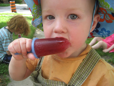 Recipe for a happy after-school transition: pour any flavour of juice into molded plastic and freeze; meanwhile, raise the temperature outside and throw in plenty of sun with judicious sprinklings of shade; collapse on porch or yard or sidewalk with magical ingredient in hand; dig for ants, read a magazine, lounge, wander, bliss out. This too can be yours, if for ever so fleetingly (how long does it take a popsicle to melt?).