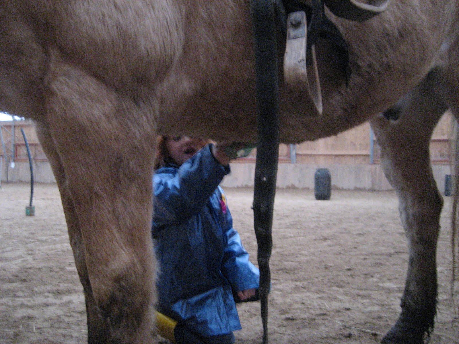 We arrived early. I used to work with horses and at a stable, and I had a feeling that if we arrived early they just might put us to work, and we just might be really really happy about that. So we did, and they did, and Apple-Apple got her first opportunity to groom a pony. He was a big pony, sleepy and old, and muddy. The smell of horse hair and dust, the sounds of the horses, the sawdusty sight of an indoor arena … this was supposed to be a birthday gift for Apple-Apple, but honestly, I’m not sure which of us took more delight from it.