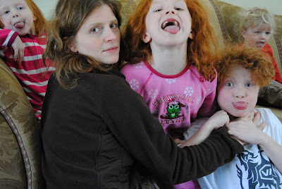 The two oldest are quietly playing Lego together, after taking charge of lunch. With a bit of nauseated-Mama assistance, and some decent teamwork, they made tuna melts in the toaster oven. AppleApple sliced the bread and cheese, Albus worked the broiler. A friend has offered to bring supper, and I won’t turn her down. Even AppleApple, who had experienced a mild frisson over being in charge of the food prep today, thought it was a happy development: “Or we would probably be eating peanut butter and jam sandwiches for supper.”