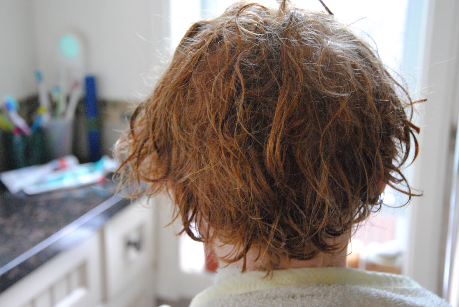No real before/after for AppleApple, because I simply trimmed her ends. And we worked through those dreadlocks that had formed on holiday, due to complete lack of hair-care. This girl is a wild child (for which I love her dearly, though it is my motherly duty to tame her just a wee bit). We were eating out at a restaurant yesterday evening, a stop on the drive home, and in horror Kevin and I watched her devouring clumps of rice with her fingers and sucking soup down the wrong end of the spoon, with hair that suggested we’d captured her in the wild and that our attempts at civilizing her had not been promising.