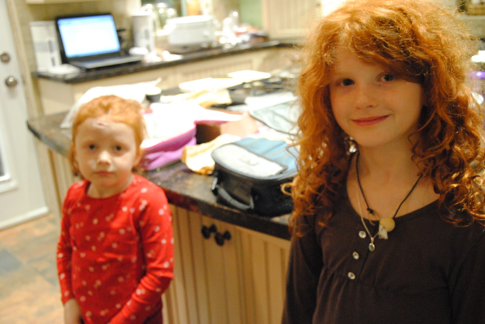 Today is the last day that AppleApple will be seven. So, as is tradition, we took a photo to mark the occasion. Her sister appears in the background of one with a most pitiful expression and a gash on her head, self-inflicted (which may be better than the alternative; not sure), when she was jumping with excitement to get into the back of the truck. I was at home trying to write another story, and Kevin was managing all the kids. It was a picture of gore when they arrived home–gore and chaos. We cleaned her up and steri-stripped the wound (Kevin’s job; mine was to hold her and remind her take calming breaths). At one point, post-supper, I was fielding information that required a response from all four children, simultaneously, while trying to clear the table and do the dishes. With today’s story rattling slightly unfinished around my head. AppleApple was going down the party agenda, in detail; CJ came to report that Albus was being mean to him; Albus explained that he just needed some Alone Time; and Fooey desperately wanted to be held, too (I was holding CJ). I looked at Kevin and said … I am feeling some stress. He agreed.