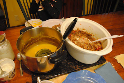 Wednesday night. Wednesday is always a crockpot supper. I tried out a new recipe with underwhelming results: a lentil and rice pilaf, which would have been far superior cooked on the stove. It was mushy, though smelled pretty good while cooking (cinnamon stick). Luckily, there was also mashed potato soup to warm up and serve. We ate together, between music class and Apple-Apple’s soccer.