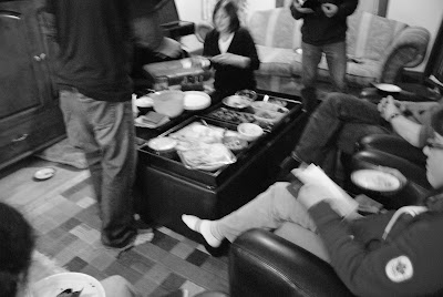 Saturday supper. This is not a photo of Saturday’s supper (we had leftovers; after the race, I did nothing but nap, write, and float around feeling amazing and not in the least in the cooking mood). This is a photo of the snacks brought by my poetry book club, who met here on Saturday evening. There was an absolute feast of snackeries. There was even cake.
