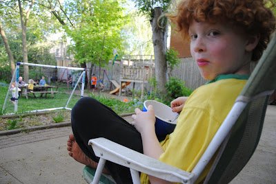 Eight boys walked home from school together. They had a snack. They went to the comic book shop uptown and read comic books on benches (with supervision, I should add). They came back to a pizza supper, and made their sleeping arrangements in the basement. Outside to play baseball.