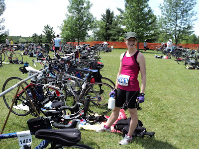Packing up afterward in the transition zone. Note the bike gloves. I couldn’t rip them off fast enough after the cycling, and then I forgot they were there. Ah, the face of a happy woman. Holy bleep, people, I actually did it!