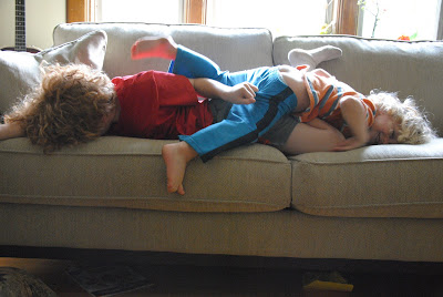 This is not to suggest that daughters don’t wrestle. But whenever daughter # 1 enters into the fray, holding a pillow, with a gleam in her eye, I shut the show down. I don’t think this is sexist, really, I don’t. It’s because she aims with intent. Somehow, the boys wrestle without doing each other any harm. But AppleApple comes out swinging. She wants to Win. (Maybe I am parenting her differently. What do you think?).
