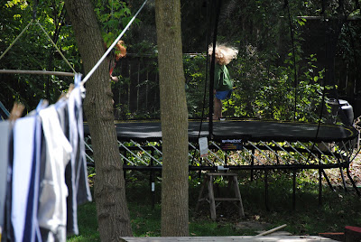 (Side note # 3: Not everyone needs to schedule time for exercise. The little kids, who won’t get extra swimming time, more than make up for it racing their bikes around the house on the loop of driveway, patio, walkway, and sidewalk. Not to mention much trampolining. CJ: “Look how high I can jump, Mom! You have to come and see me!”)
