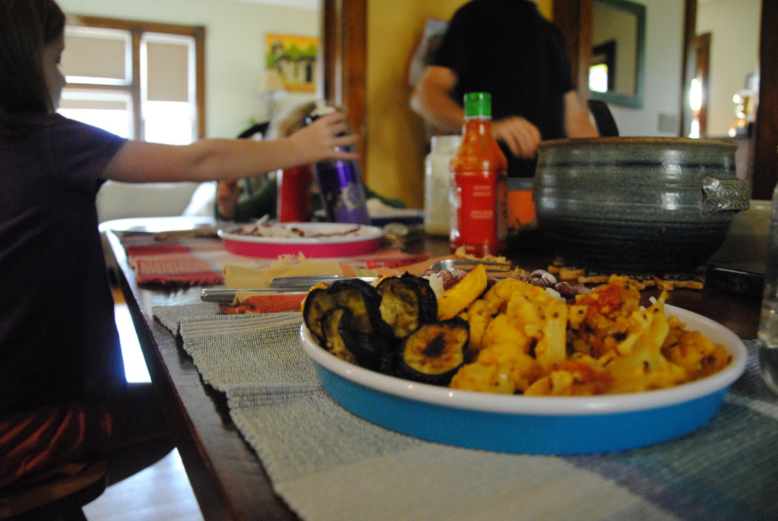 The reviews. Beans good, rice good. Some eggplant burns while I blog about menu; the irony.