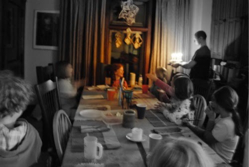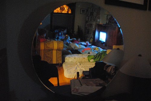 Now, just to put the icing on a truly terrific weekend, last night also featured our turn in a babysitting exchange. Have you heard of the overnight babysitting exchange? If not, may I highly recommend such a venture to you. First, find a willing family of equal size. Second, set two dates. Third, drop your kids off with their sleeping gear. Fourth, thank me later. (And thanks to Tricia for introducing the idea to us.) I didn’t mention step 2.5, in which the other family’s children are dropped off at your house with their sleeping gear. Yes, in our case, it means having eight children in the house (we took our turn last month.) But let me just shout: Totally worth it! Completely. Absolutely. I say we book dates on a quarterly basis. Seriously. Just for example, we spent on dinner what we usually spend on babysitting. And we went out for brunch this morning. Brunch!