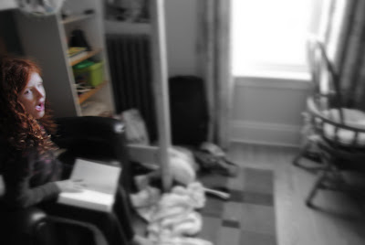 Friday was also AppleApple’s actual birthday. She celebrated with three hours of soccer. But we also had a surprise for her: her own writing desk for her new room. Thanks once again to kijiji. We’d been storing it in the basement, and post-slumber-party Kevin hauled it upstairs and set it up in her room (all while the birthday girl herself was sitting at the counter, completely oblivious, absorbed in a new book). We then coaxed her up: “Let me get a photo of you in your new room.” The first attempt was a bust. She went into the room, posed, and walked out. Kevin and I just about died laughing. This pretty much sums up our AppleApple: she lives deep inside her head. So we coaxed her back up a second time, she sat down in her reading chair, looked across the room and — at last! — spotted the writing desk. Reaction above. Sweet.