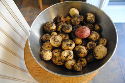 And the kids have spent hours together in the backyard, even though it isn’t particularly warm or sunny out. The sidewalk is being chalked. A rung on the climber has been broken. The potatoes are thriving. Wouldn’t it be great to have a treehouse? A trampoline? Another tier of garden beds? Chickens? A dog? I’m looking around and seeing lots of potential.