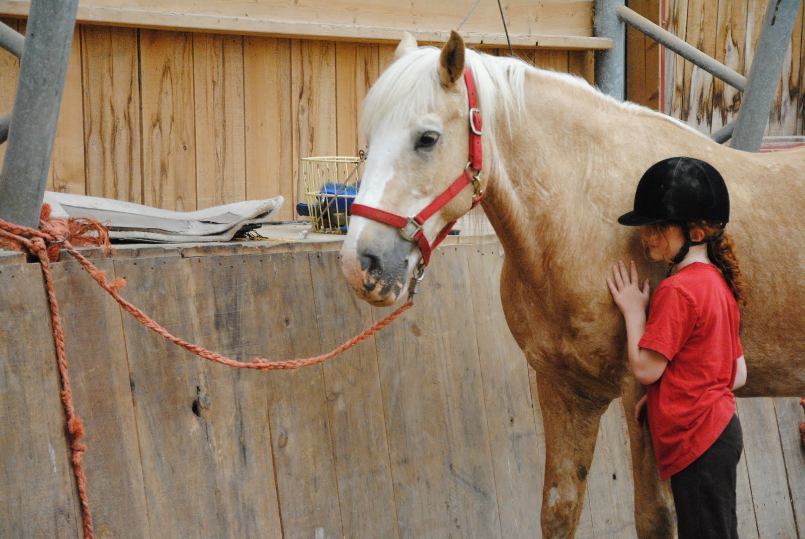 Photos above include AppleApple on her last day of horse lessons (at least for this round), with Sunman, who was her regular ride. I love how comfortable and affectionate she is with all animals, even ones that are so much larger than her.
