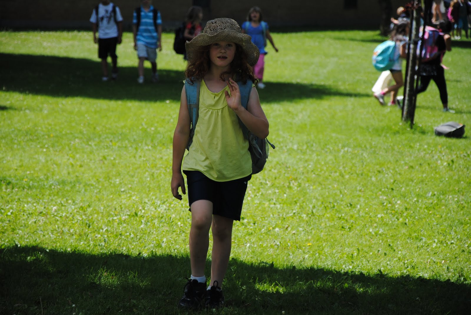 It’s nearly July. The big kids have one day of school left in grades two and three. And my Fooey has completed junior kindergarten. (See photo, above, of her getting ready to go to school this morning).