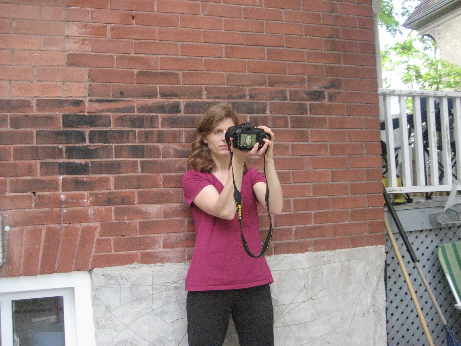 Downloading photos from our point-and-shoot camera today, I discovered AppleApple’s take on life in the backyard, just before suppertime, today. Kevin was attempting to fix a hand-me-down bicycle for Fooey to ride (the effort was futile). AppleApple was mourning and recording the loss of her hammock (to time and to weather). Fooey and CJ were playing–what else? And I was photographing myself for my 365 project: how strange, almost jarring, to see that process recorded, from her perspective.