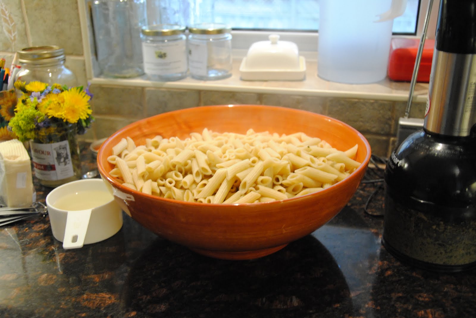 Friday supper. I wasn’t here, but suggested that Kevin serve leftover pasta and sauce. I got up early for an hour-long swim, arrived home and popped the sticky buns into the oven. Kevin went to work early, so I biked the little kids to nursery school as soon as I’d waved goodbye to the big ones. At home: took a quick nap, started packing for a weekend away. The little kids stayed for “lunch bunch” at school, so I got an extra half hour on the other end. The weather was ridiculous: steaming hot and unsettled. We left for the cottage around suppertime, and arrived before dark. No official “supper” for me, but plenty of cheese, crackers, homemade tapenade, and other goodies. Oh, and wine. Can I go back there this weekend, please?